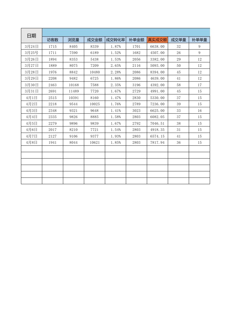 【七哥电商会】店铺每日数据汇总