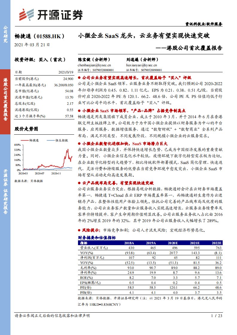 【开源证券】港股公司首次覆盖报告:小微企业SaaS龙头,云业务有望实现快速突破