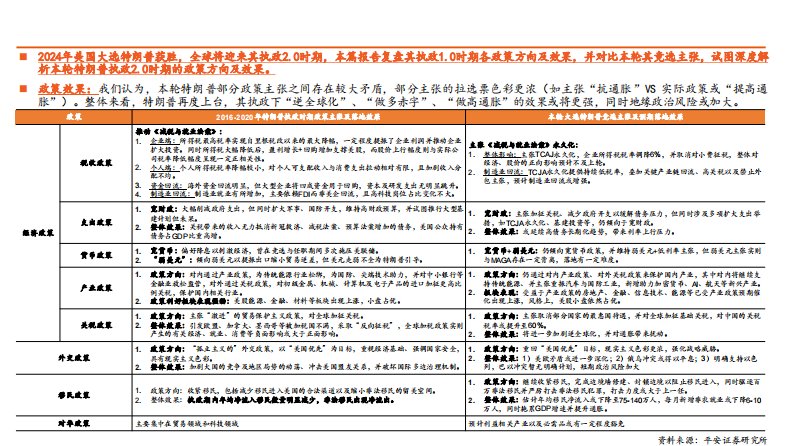 解构特朗普政府,从政策到内阁,本轮“政治周期”将如何影响大类资产?(上篇)-平安证券