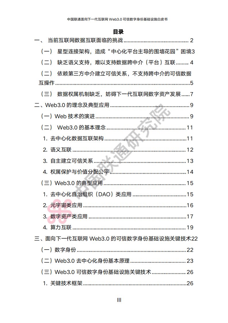 中国联通面向下一代互联网 Web3.0 可信数字身份基础设施白皮书(2024 年)