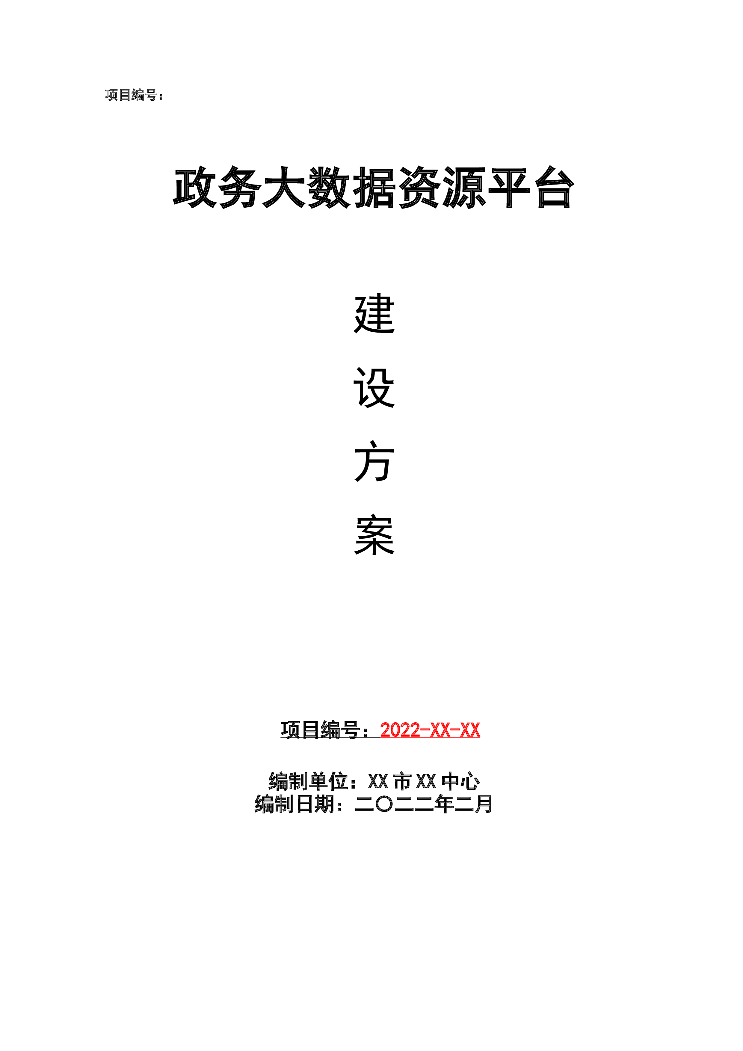 项目编号:政务大数据资源平台建设方案项目编号:2022-XX-XX编制单位:XX市XX中心编制日期:二〇二二年二月XX市政务大数据资源平台建设方案目录第一章项目概况..........................................................................................51.1..........................................................................................................................项目...