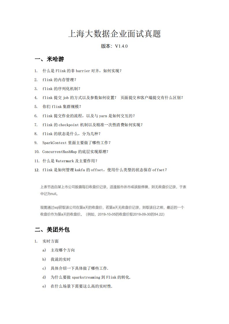 上海大数据企业面试真题V1...