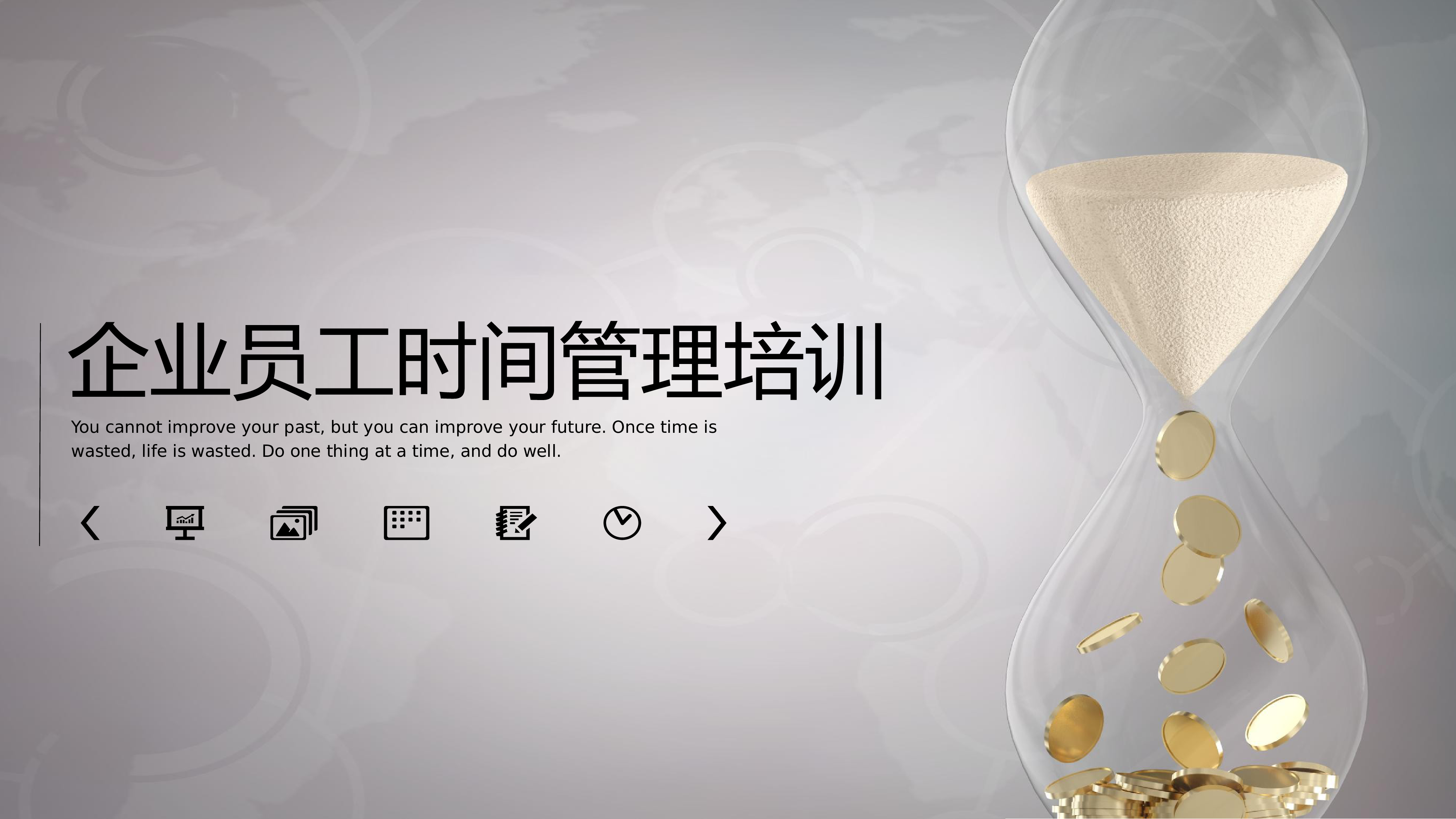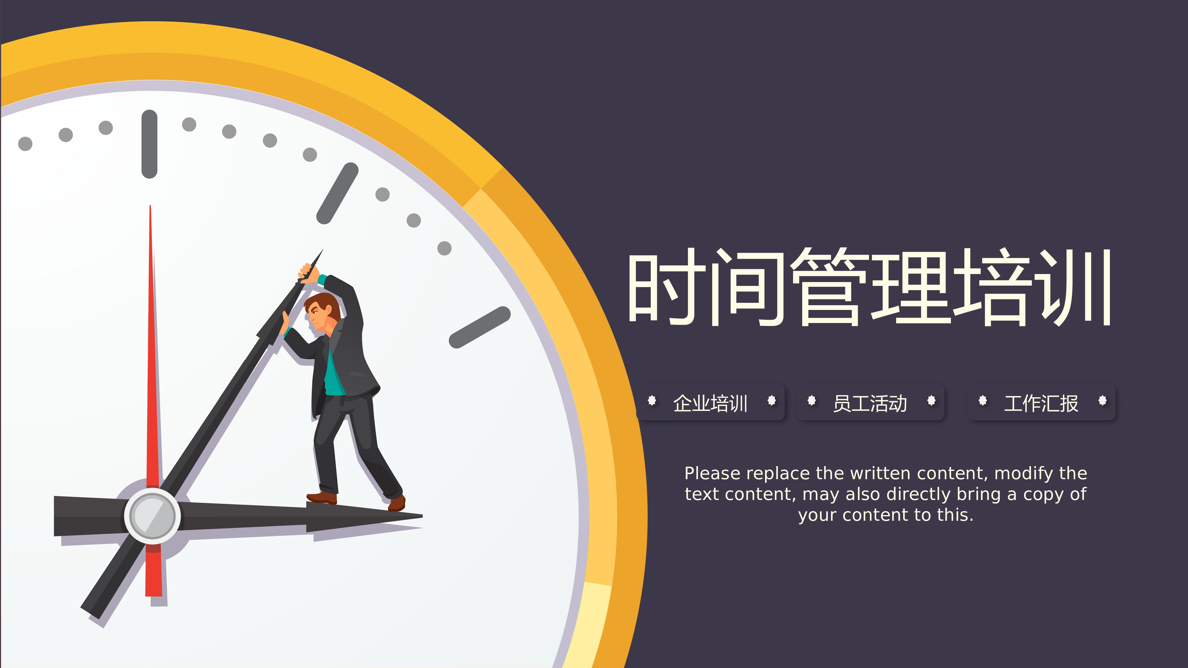 企业员工时间管理培训Youcannotimproveyourpast,butyoucanimproveyourfuture.Oncetimeiswasted,lifeiswasted.Doonethingatatime,anddowell.01请输入您的标题ADDYOURTITLE020304请输入您的标题ADDYOURTITLE请输入您的标题ADDYOURTITLE请输入您的标题ADDYOURTITLECONTENTS目录添加标题添加标题添加标题添加标题您的标题在母版中更改标题文字CLICKTOADDCAPTIONTEXT此处输入文本此处输入文本此处输入文本此处输入文本0102030...