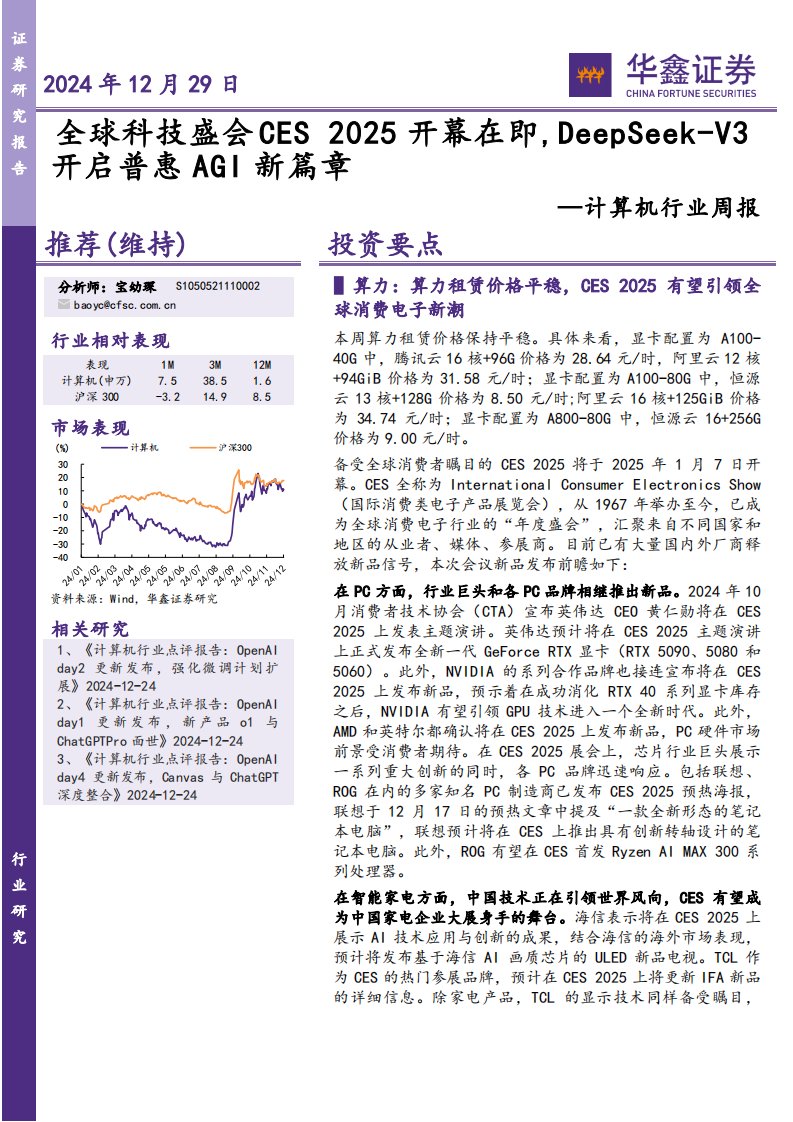 计算机行业周报:全球科技盛会CES 2025开幕在即,