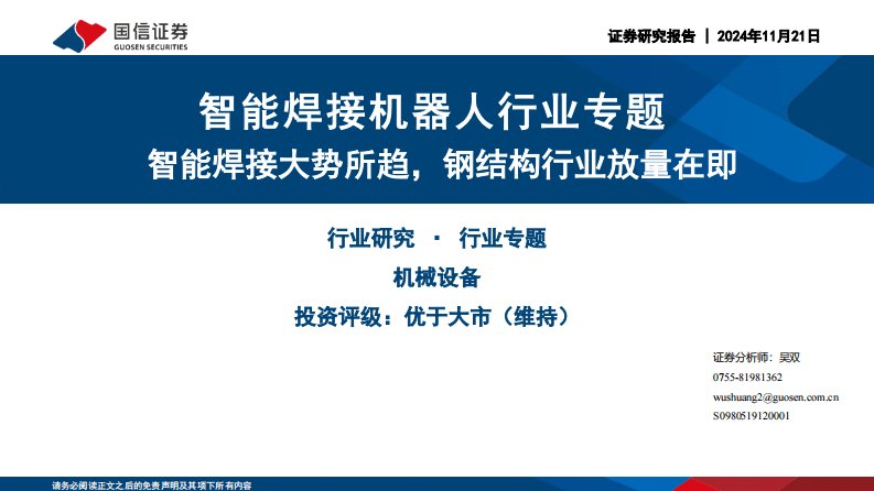 行业专题:智能焊接大势所趋,钢结构行业放量在即