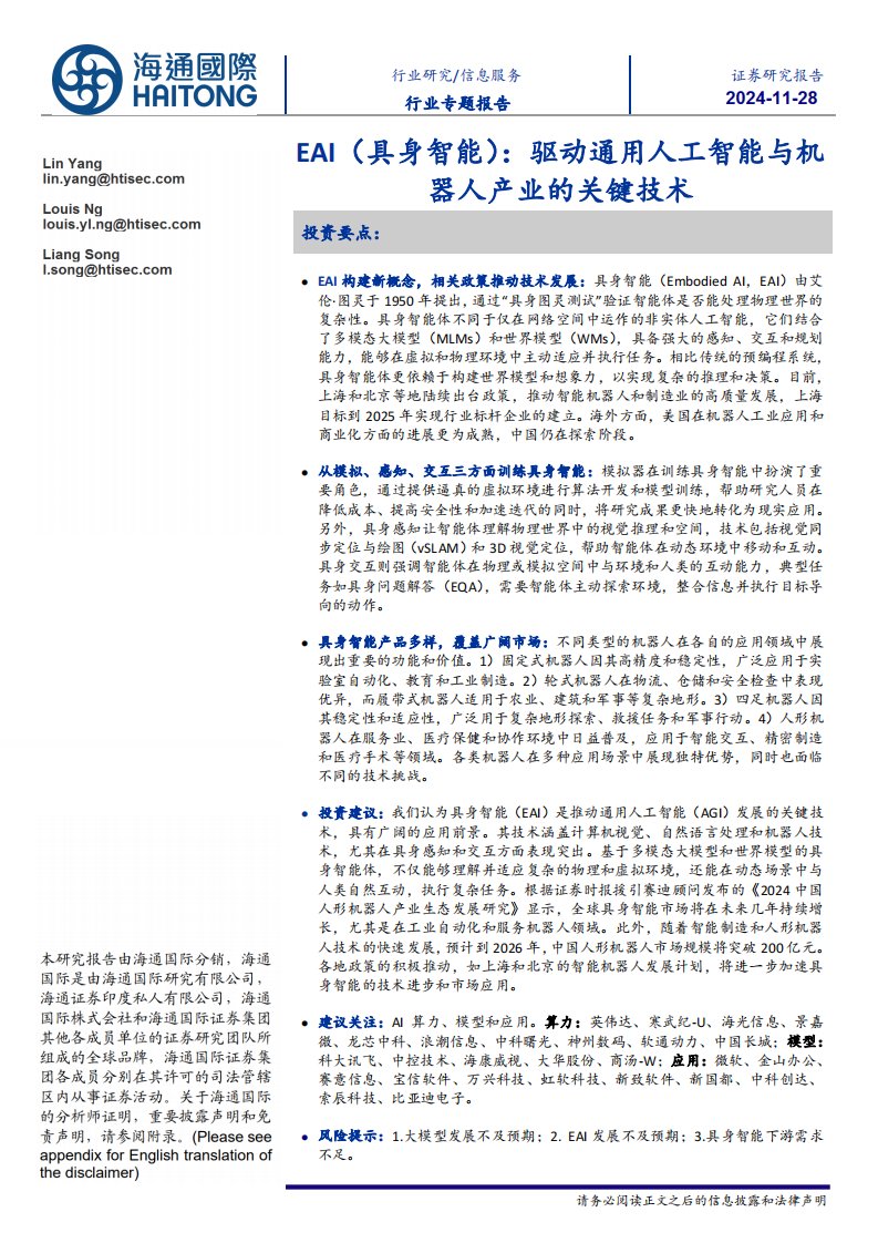 ):驱动通用人工智能与机器人产业的关键技术-海通国际-37页