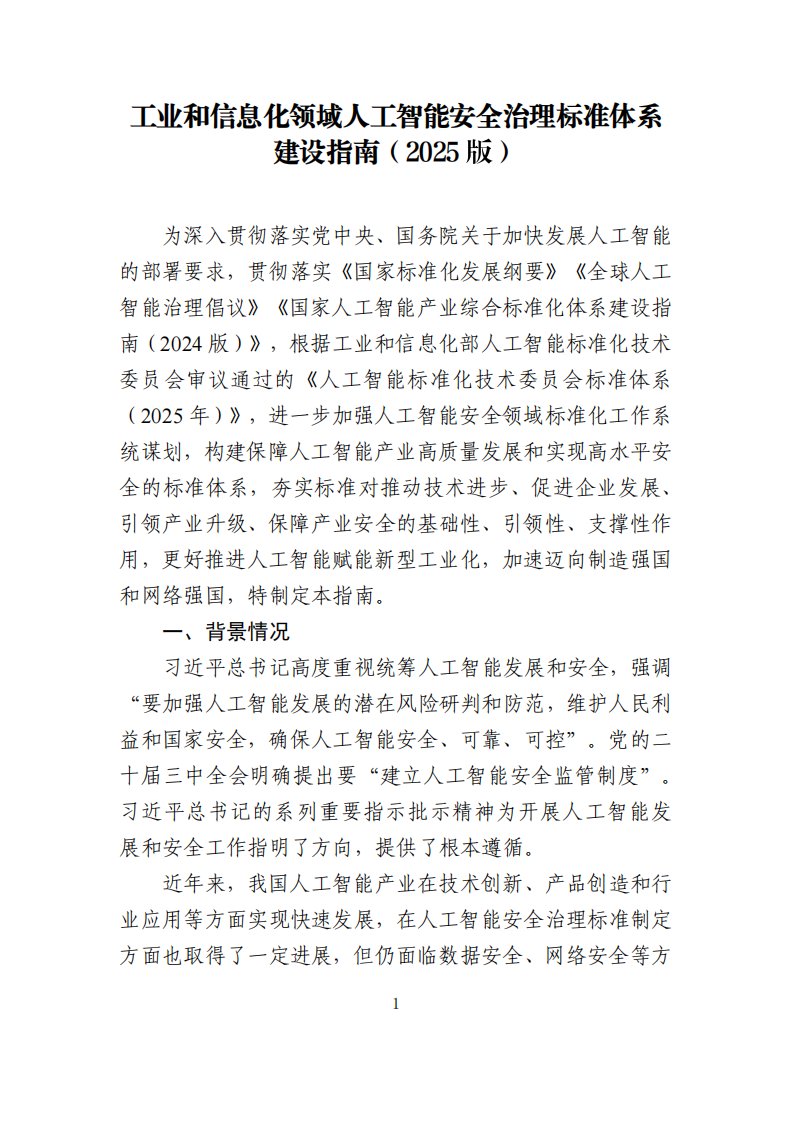 领域人工智能安全治理标准体系建设指南(2025版)
