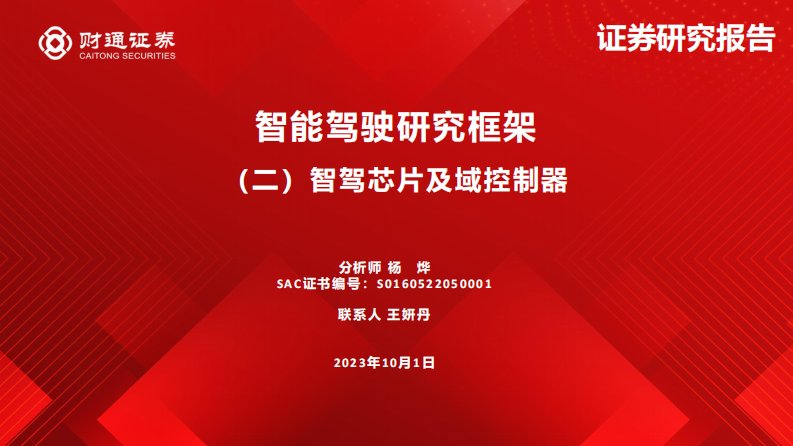 汽车:智能驾驶研究框架:(二)智驾芯片及域控制器-财通