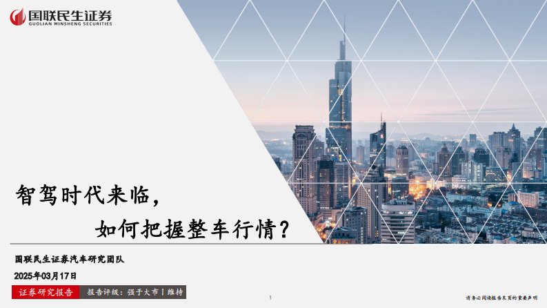 汽车行业:智驾时代来临,如何把握整车行情?-国联民生