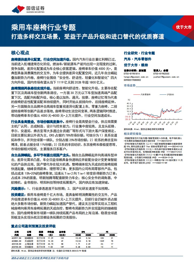 乘用车座椅行业专题:打造多样交互场景,受益于产品升级和进口替代的优质赛道-国信